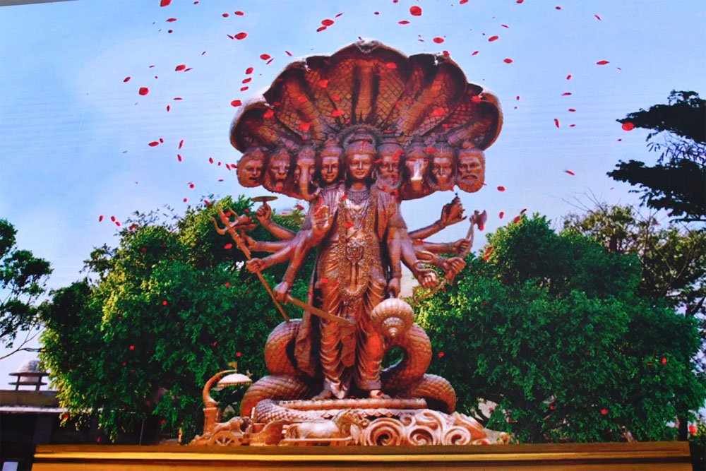 दोनों कलाकृतियां मिलकर दिव्य ज्ञान, मार्गदर्शन और गुरु-शिष्य के अटूट संबंध का प्रतीक बनती हैं। विराट रूप की मूर्ति भगवान कृष्ण के उस विशाल और दिव्य स्वरूप को दर्शाती है, जिसे उन्होंने कुरुक्षेत्र के युद्ध के दौरान प्रकट किया था। यह मूर्ति इस विचार को भी उजागर करती है कि एक अदृश्य और शक्तिशाली शक्ति जीवन के संचालन और संरक्षण में निरंतर सक्रिय रहती है।